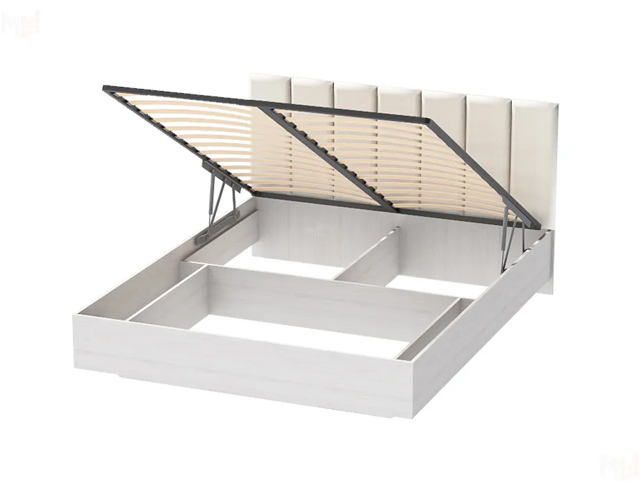 Конструкцией предусмотрено место для хранения постельного белья, подушек, пледов и прочих необходимых вещей, что значительно экономит полезное пространство в доме.