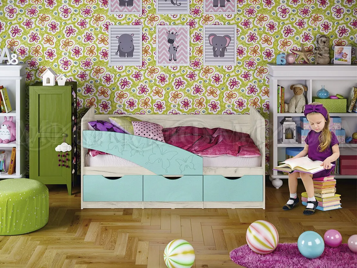 Детская кровать Бабочки - отличное решение для детской комнаты. Фасад кровати оформлен панелью с рельефным изображением бабочек. Кроме декоративной, он несет также защитную функцию – предотвращает возможность падения ребенка на пол во время сна.
