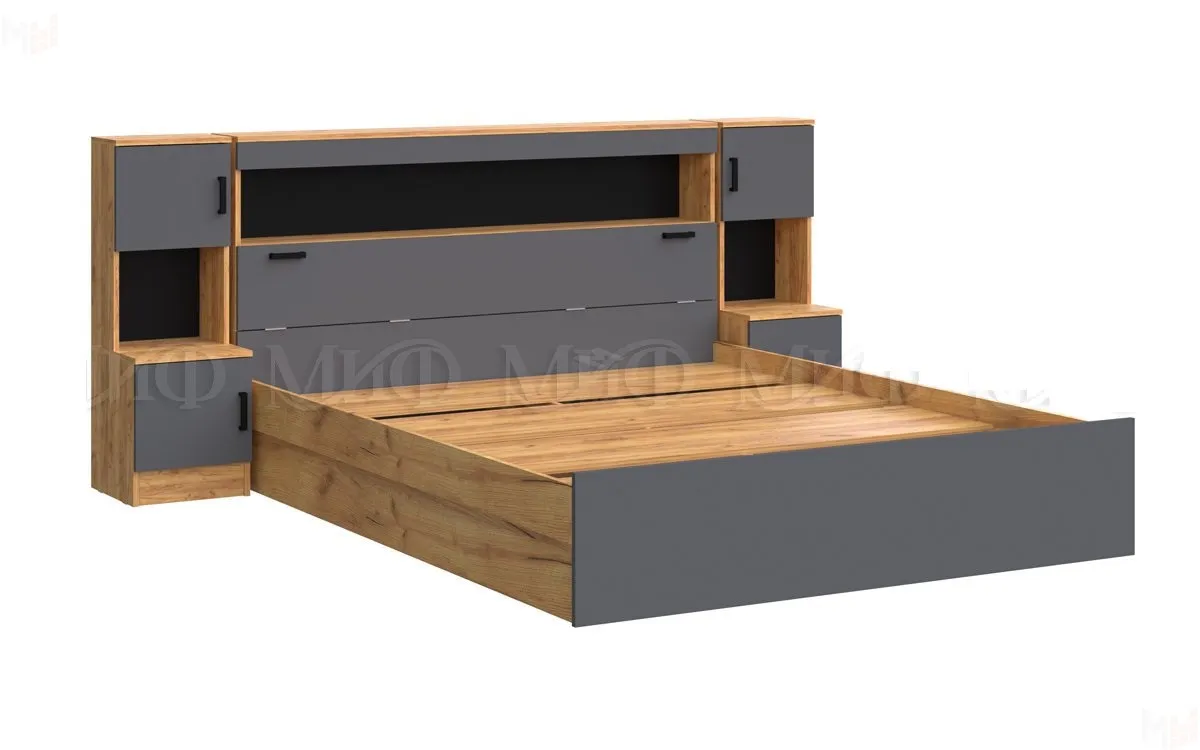 Кровать выполнена из ЛДСП крафт золотой/графит.
