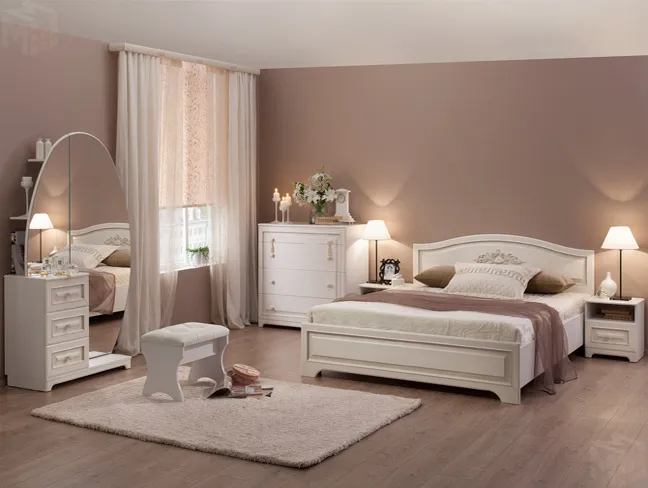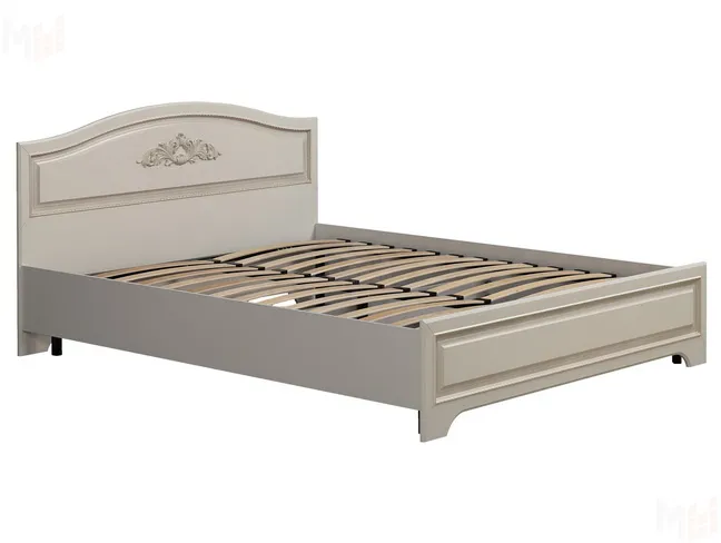 Кровать выполнена в актуальном цвете джелато, который располагает к спокойствию и уюту, а также оснащена ортопедическим основанием, которое обеспечит здоровый и крепкий сон. Спинки кровати украшены объемным декоративным элементом и фрезеровкой с патиной.