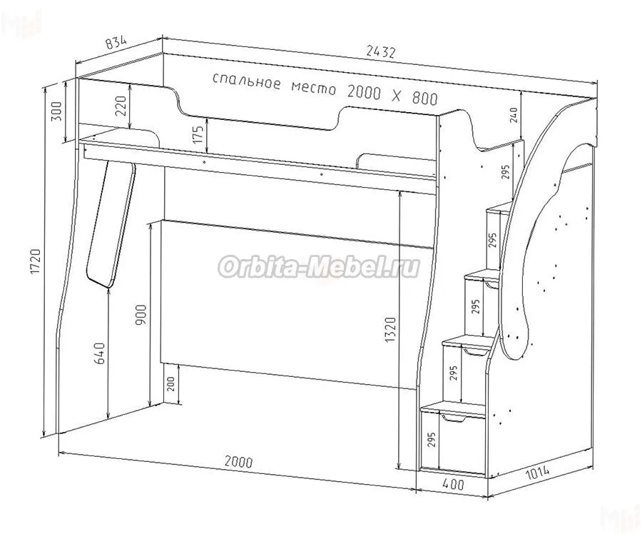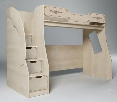 Кровать-чердак Фанки Кидз Классика ФКК-23/1 с встроенной тумбой-лестницей дополнительной перилой.