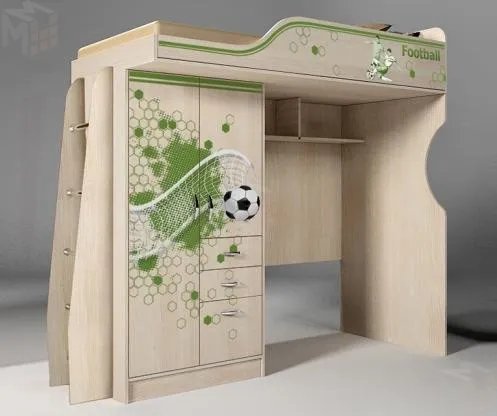 Кровать-чердак Футбол со шкафом и нишей ФУТ-4/1