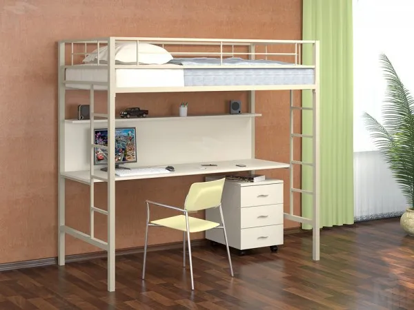 Все металлические элементы кровати покрыты износоустойчивой краской без запаха. Кровать-чердак можно собирать и разбирать неограниченное количество раз, и от этого она не потеряет в прочности и качестве. -