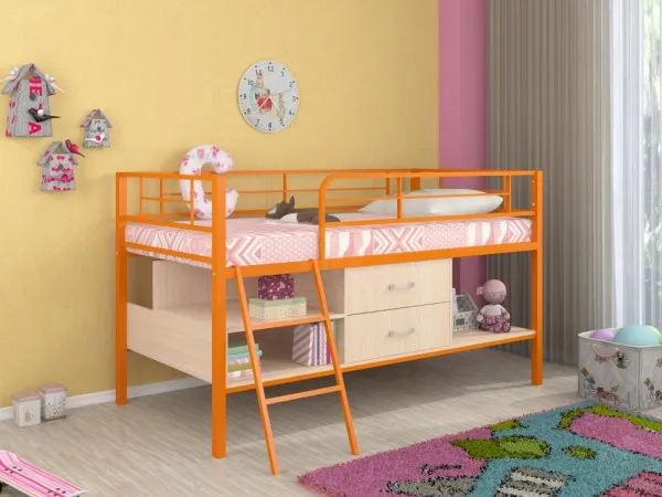 Металлическая кровать-чердак Севилья Мини с ящиками от производителя "Формула мебели" способна выдерживать нагрузку до 180 кг, что делает ее подходящей как для детей, так и для взрослых. В отличие от кроватей из ЛДСП выглядит менее громоздкой. В комплект входит прочная лестница, которую по Вашему желанию можно установить справа или слева.