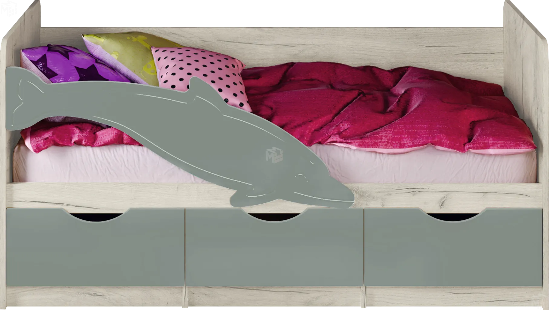 Детская кровать Дельфин - отличное решение для детской комнаты. Фасад кровати оформлен панелью с рельефным изображением дельфина. Кроме декоративной, он несет также защитную функцию – предотвращает возможность падения ребенка на пол во время сна.