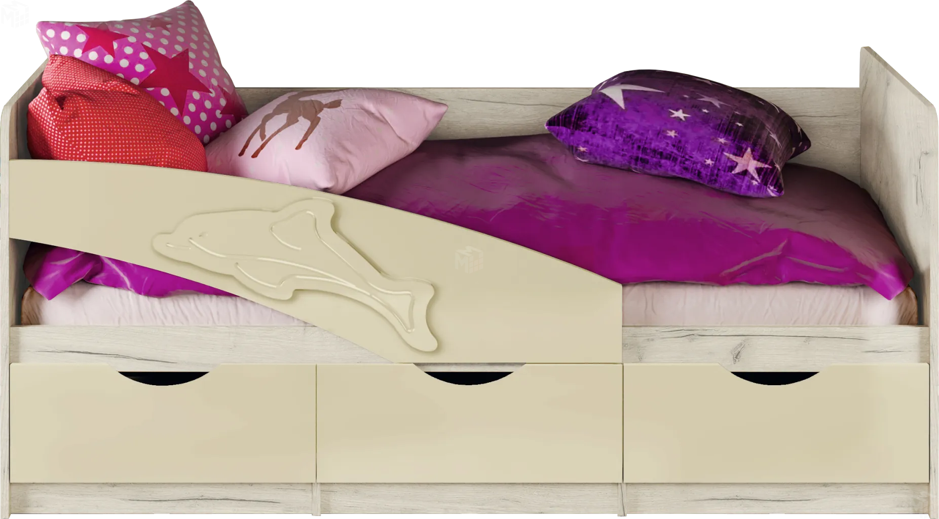 Детская кровать Дельфин - отличное решение для детской комнаты. Фасад кровати оформлен панелью с рельефным изображением дельфина. Кроме декоративной, он несет также защитную функцию – предотвращает возможность падения ребенка на пол во время сна.</p>