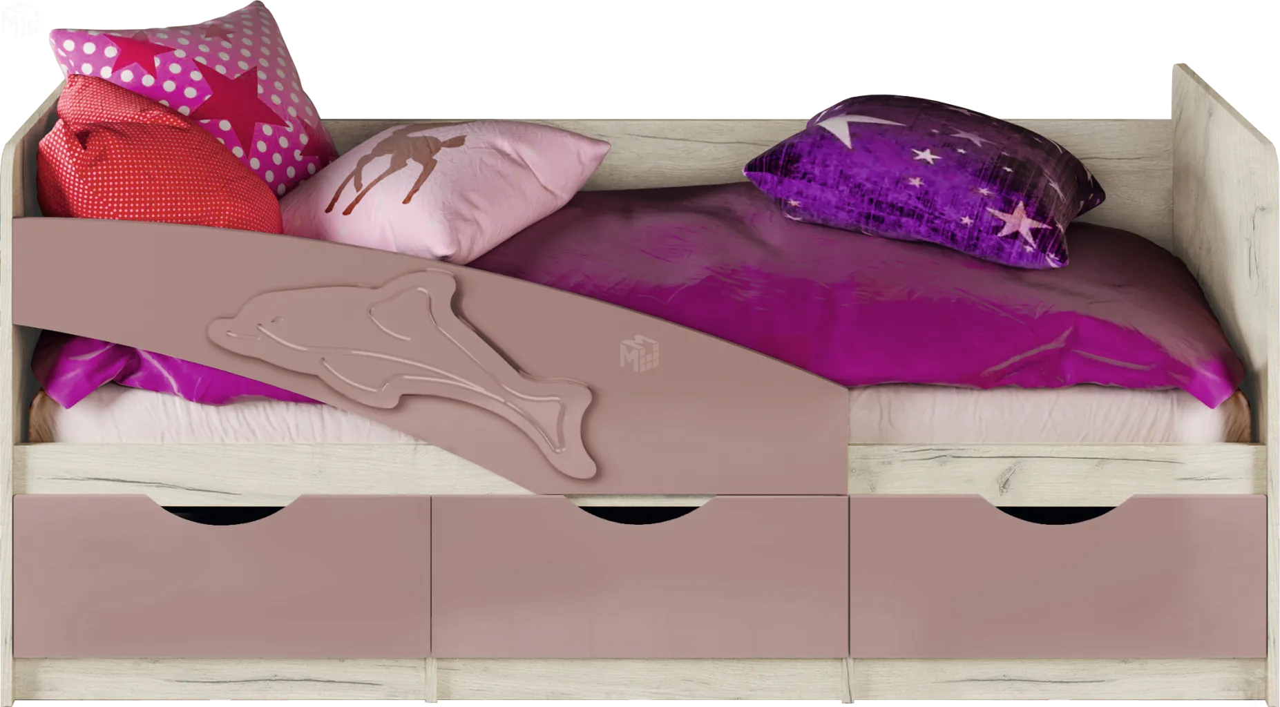 Детская кровать Дельфин - отличное решение для детской комнаты. Фасад кровати оформлен панелью с рельефным изображением дельфина. Кроме декоративной, он несет также защитную функцию – предотвращает возможность падения ребенка на пол во время сна.