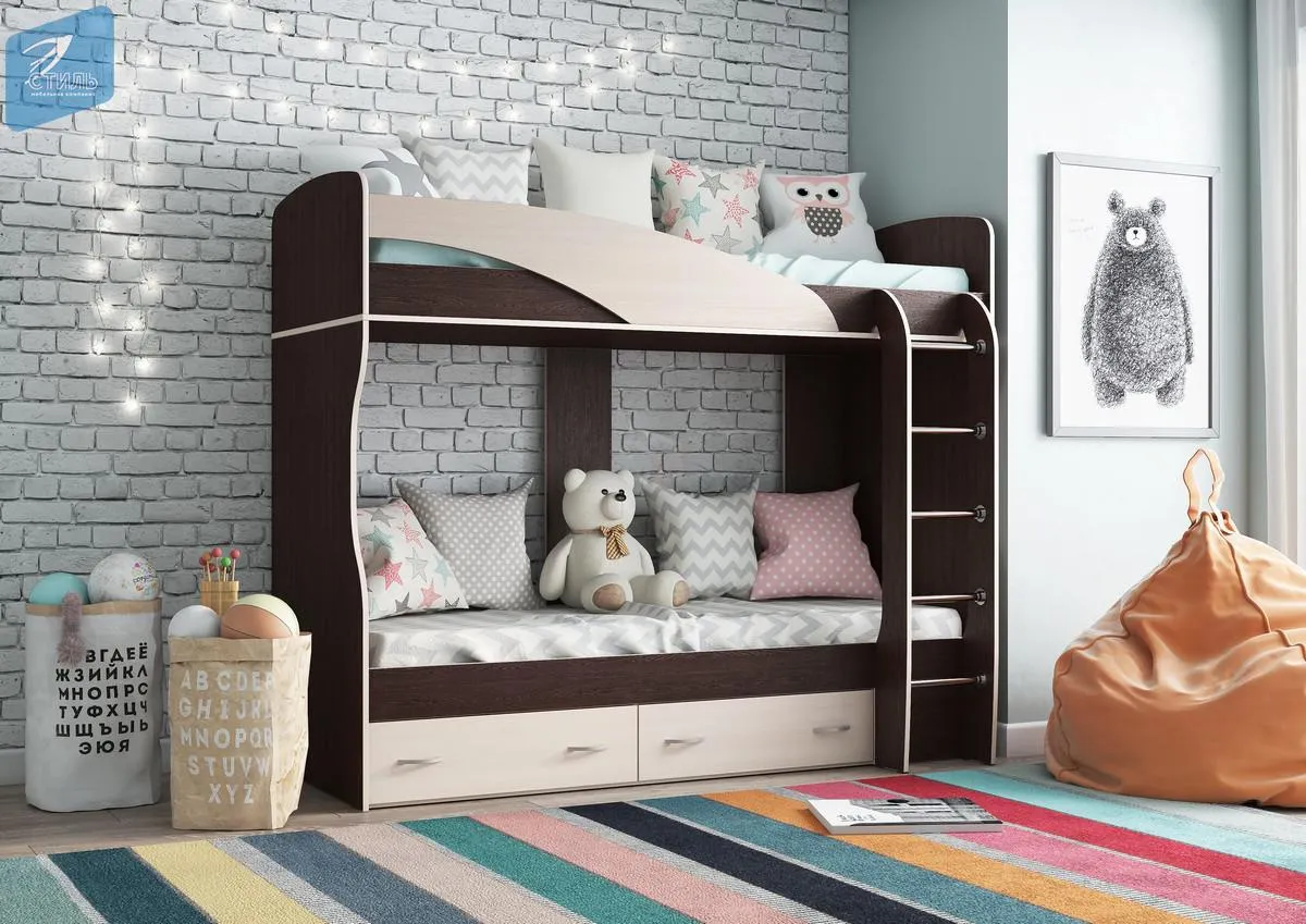 • Нижнее спальное место дополнено двумя выдвижными ящиками на роликовых направляющих