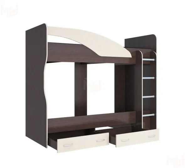 • Кровать-2-х ярусная имеет в своем составе имеет два спальных места сверху и снизу, лестницу, и два выдвижных ящика снизу
