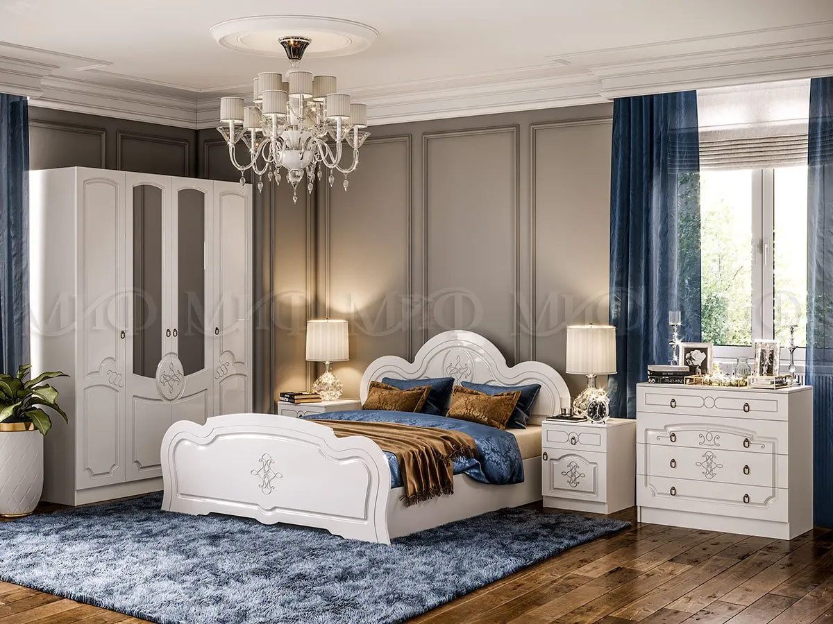 Кровать Каролина является частью модульной спальни. Каркас кровати выполнен из ЛДСП белого цвета, изголовья из МДФ белый глянец. В стоимость входит основание под матрас - сплошной лист ДСП. Размер спального места 160*200 см. Матрас приобретается дополнительно.
