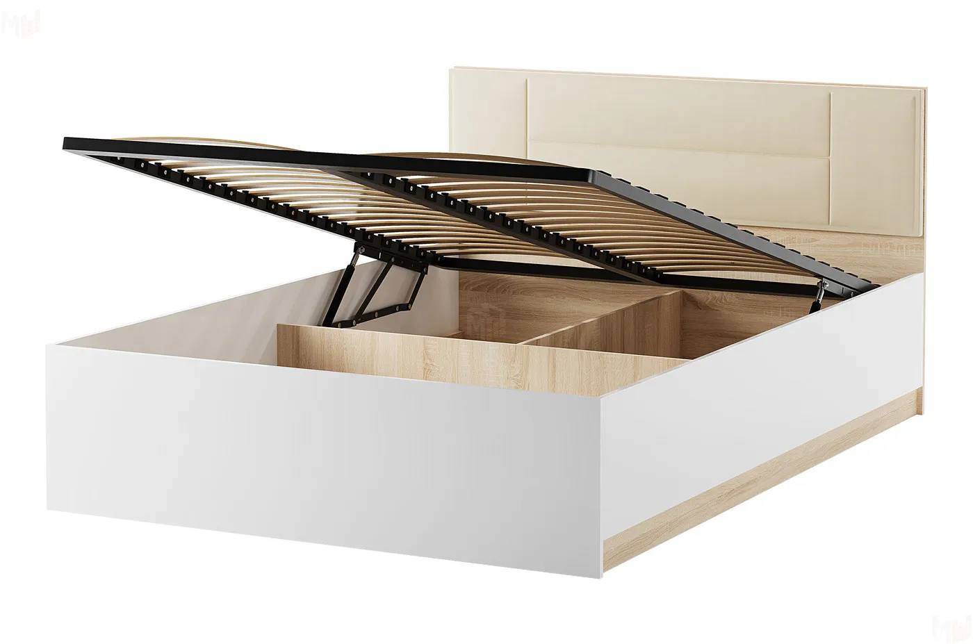 Кровать КР-1600 Беатрис с ПМ дуб Сонома-Белый глянец