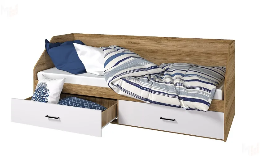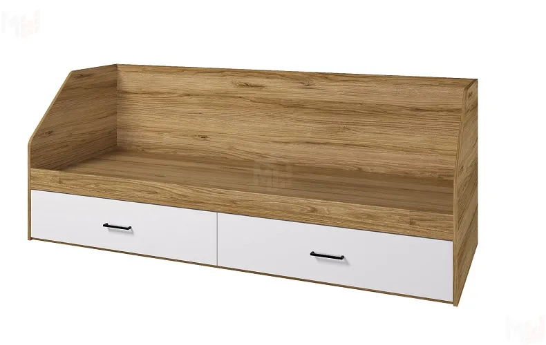 Каркас кровати выполнен из ЛДСП Дуб золотой, фасады ЛДСП Белый.