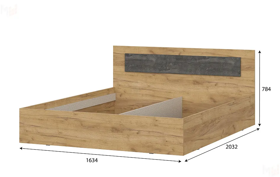 Каркас кровати полностью изготавливаются из ЛДСП в цвет корпуса, за исключением внутренних, невидимых деталей, изготавливаемых из неламинированного ДСП.