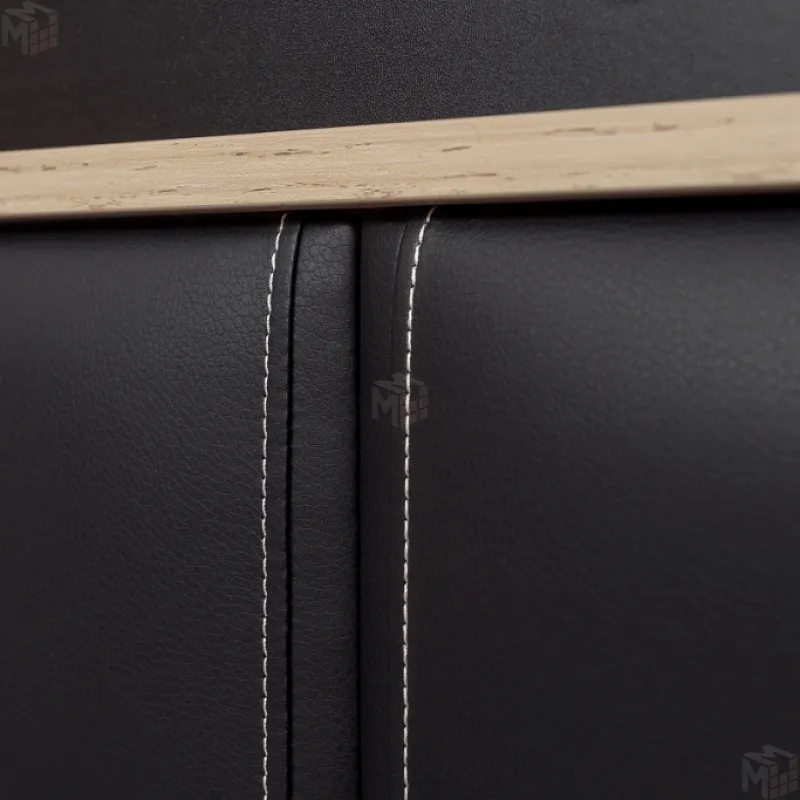 Двуспальная кровать NATURE 308 Кровать Люкс (1400) станет стильным дополнением для вашей спальни. Спокойный древесный декор поможет создать атмосферу настоящего уюта и комфорта в комнате. А контрастные черные вставки из ЛДСП и декоративные белые нити на черной экокоже сделают изголовье кровати более интересным и современным. Экокожа очень легко чистится и не выгорает под воздействием солнечных лучей. Для кровати можно докупить Основание универсальное с подъемным механизмом (1400), тем самым скомплектовать кровать с вместительным дополнительным местом для хранения. Подъемные кровати позволяют экономно использовать пространство вашей спальни, а специальный механизм подъема с газлифтами - легко пользоваться отделением для хранения.