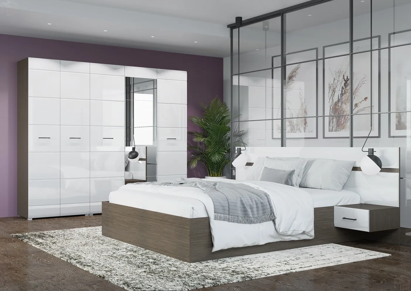 Каркас кровати выполнен из ЛДСП венге, изголовье МДФ белый глянец. Размер спального места 140*200 см. Матрас приобретается дополнительно.