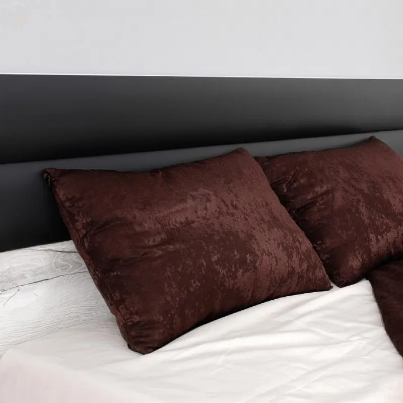 Благородный оттенок корпуса и контрастные мягкие подушечки на изголовье делают внешний вид кровати строгим и одновременно элегантным.
