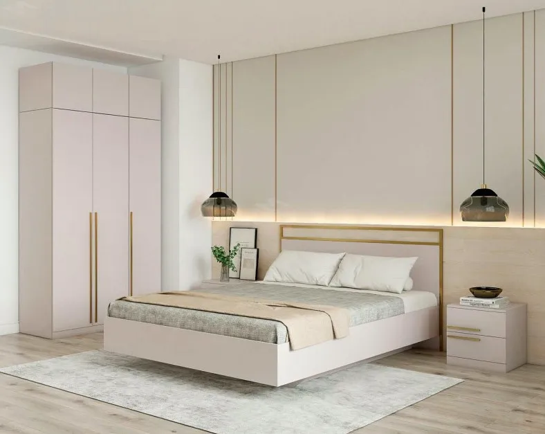 Уникальная парящая кровать – модный тренд оформления спальни. Выглядит легко и стильно, особую изюминку придает металлическая окантовка изголовья. -
