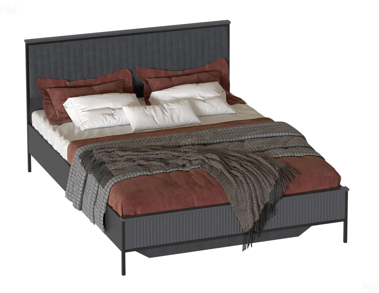 Дизайн коллекции гармонирует со стилем минимализм и лофт. Корпус изделий выполнен из качественного ЛДСП 16 мм цвета Металл Бруклин, фасады из МДФ 16 мм цвета Графит. Толщина металлических опор - 20 мм. Размеры спального места кровати: 160х200 см.