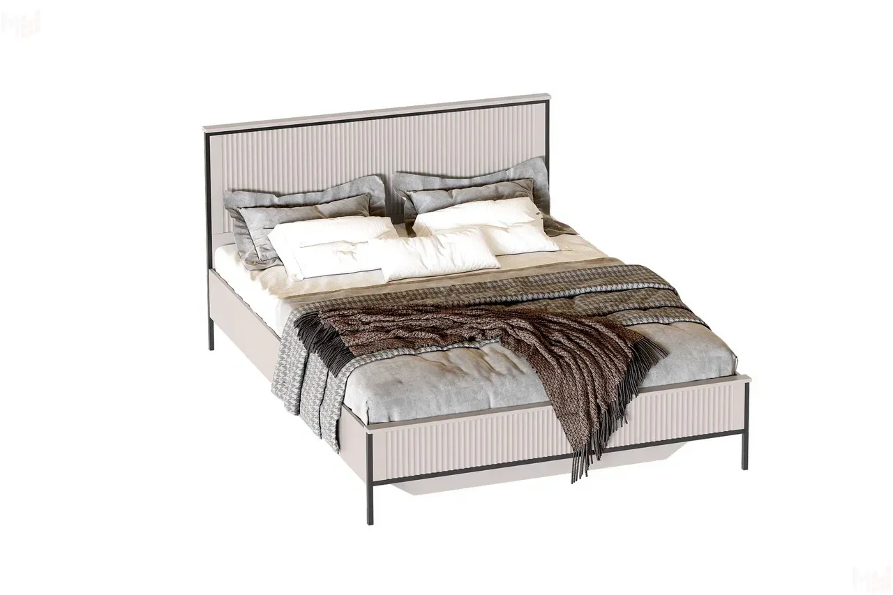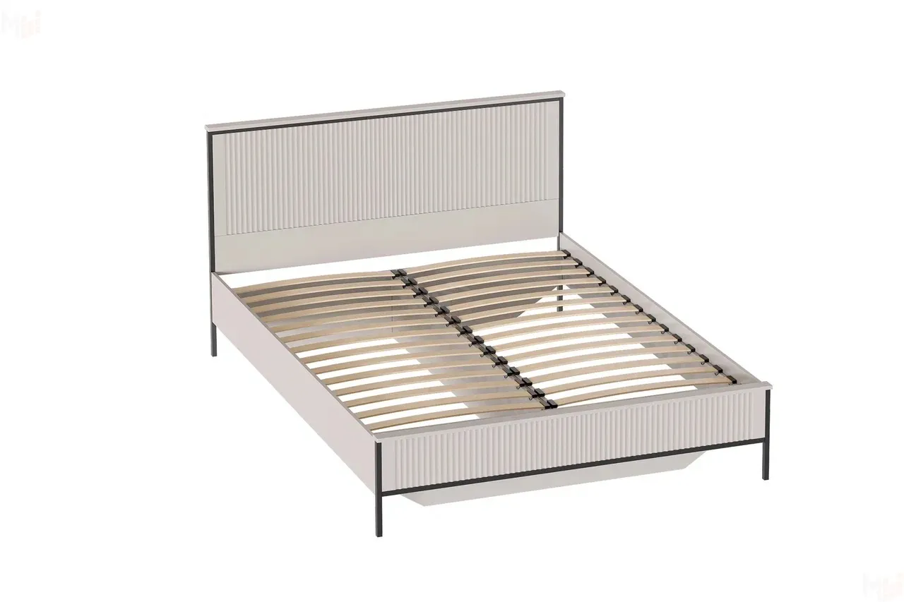 Изголовье кровати в цвете Персидский жемчуг / Вереск Ромено выполнено из МДФ и декорировано фрезеровкой. Матрасное основание из деревянных ламелей встроено в конструкцию кровати.
