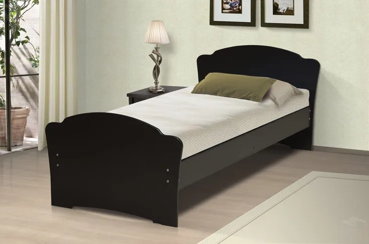 Кровать выполнена из ЛДСП, кровать имеет низкую ножную спинку. Размер спального места 90*200 см. Матрас приобретается дополнительно.