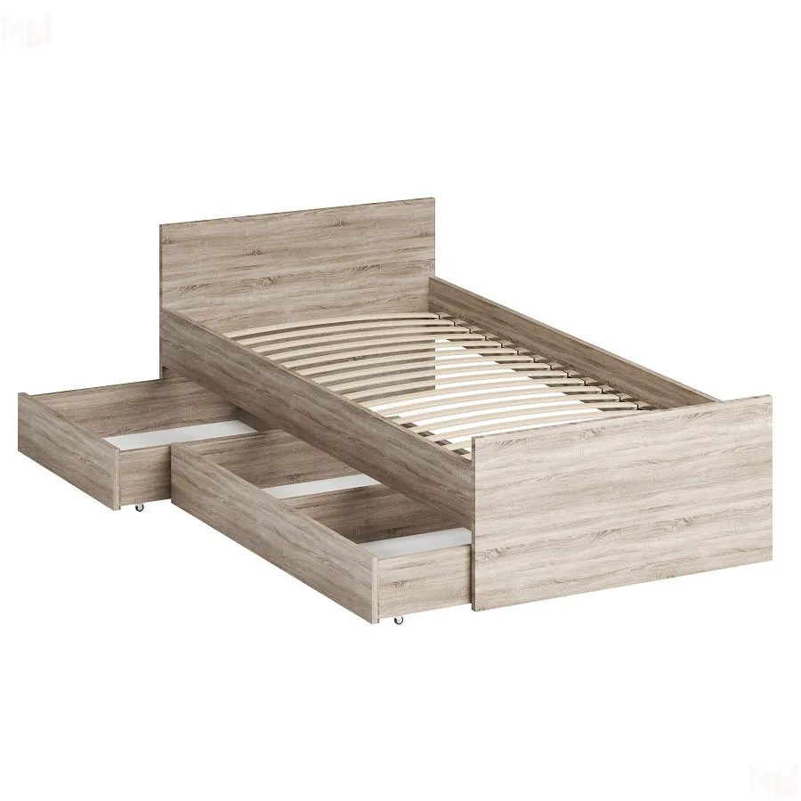 Каркас кровати выполнен из КДСП цвета сонома толщиной 22 мм.