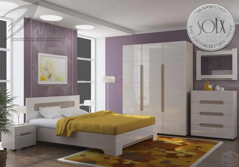 - Глянец пленки ПВХ придает спальному гарнитуру нотки изящества и роскоши. -