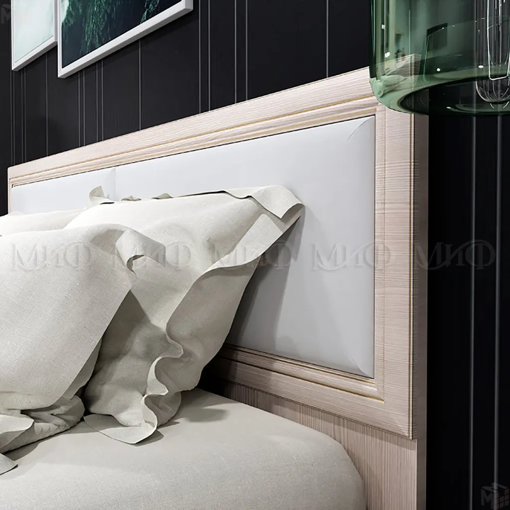 Кровать Парма выполнена в цвете сандал, имеет мягкие элементы на изголовье.