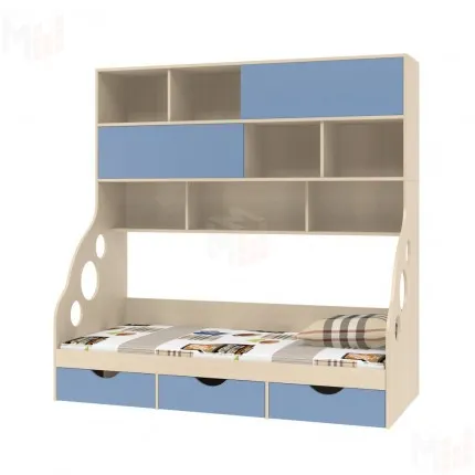 Кровать с антресолью Дельта - 21.12 - это удобный, функциональный комплекс, который состоит из расширенного спального места и блока антресолей. Антресоль состоит из открытых и закрытых за раздвижными дверями ниш, на которых можно разместить различные личные вещи. Под спальным местом расположены три выкатных ящика, в которых удобно хранить постельное белье, обувь или одежду.