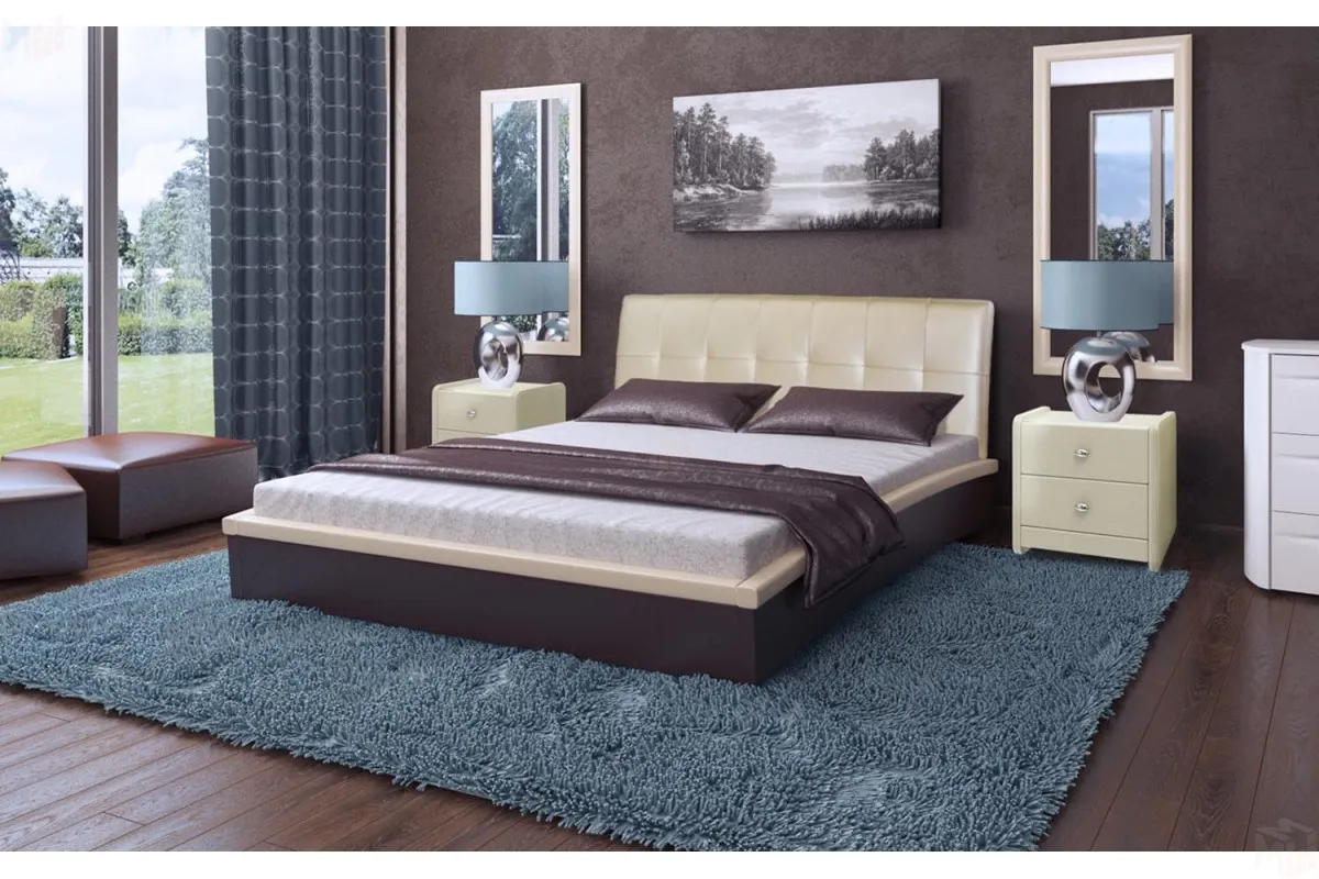 Кровать "Севилья" выпускается как в однотонном, так и комбинированном исполнении в 4-х цветах экокожи: черный, белый, бежевый, шоколад.