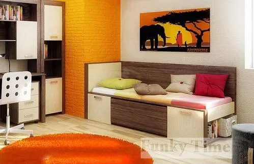 Детская серия Фанки Тайм представляет диван кровать ФТ-03. Практичный, комфортабельный и универсальный модуль, изготавливаемый из ЛДСП по технологиям австрийского производства фабрики Эггер, а также металлическая фурнитура европейского качества.