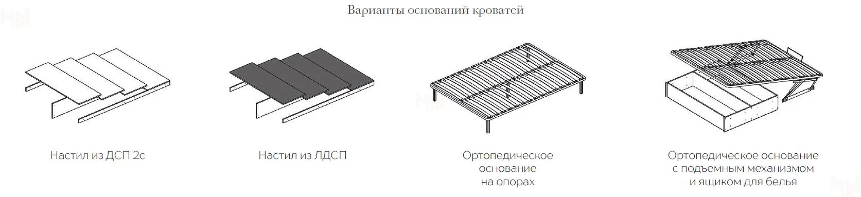 Кровать не комплектуется основанием! Дополнительно вы можете приобрести настил для кроватей ТЭКС, ортопедическое основание на опорах для кроватей ТЭКС или ортопедическое основание с подъемным механизмом для кроватей ТЭКС. -