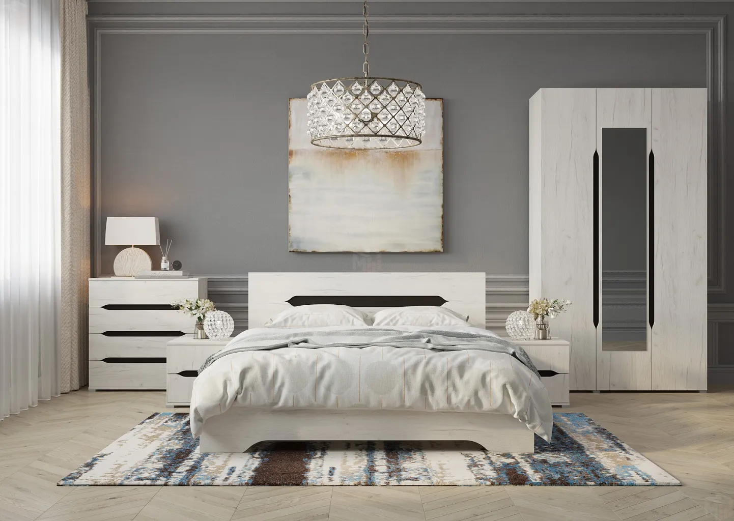 Кровать выполнена из ЛДСП. В стоимость входит основание под матрас - решетка с деревянными ламелями.
