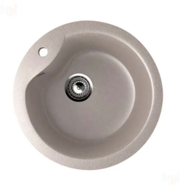 Круглая мойка из искусственного камня. Модель Ulgran U-102. Хит продаж. С отверстием под смеситель. Самая глубокая мойка. Необычный дизайн отделки бортика мойки.