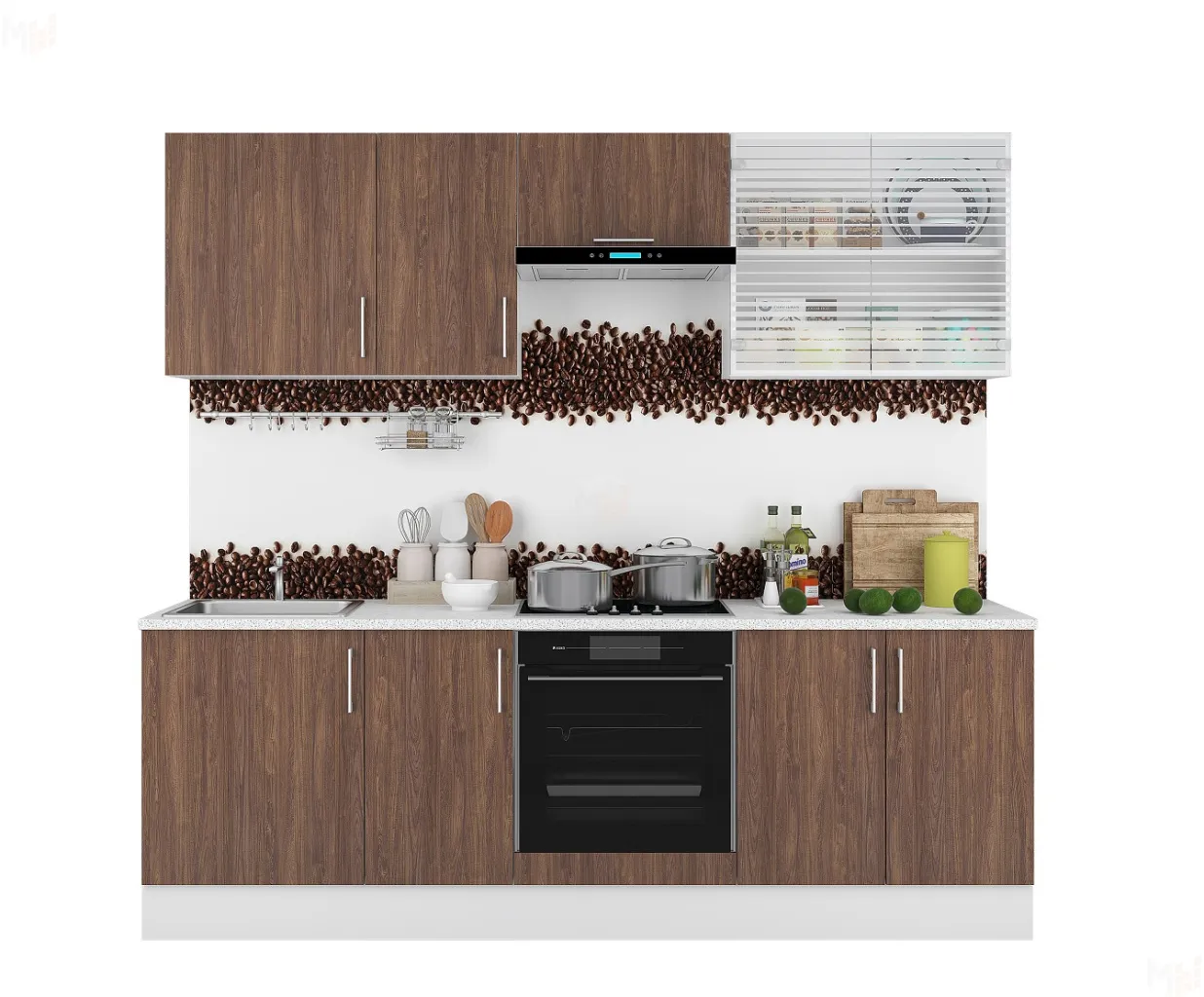 Мойка, стеновая панель и вытяжка приобретаются дополнительно. -