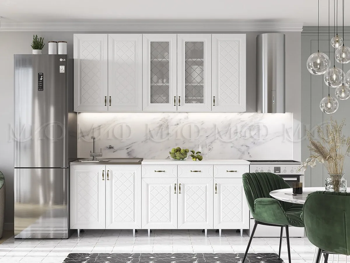 Корпус кухни из ЛДСП белый, фасады МДФ цвет белый. Ручки сталь.
