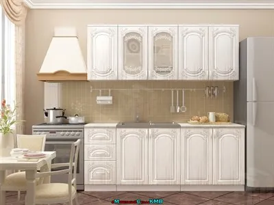 4) Верхний шкаф-витрина с одной полкой: длина - 800 мм., ширина - 320 мм., высота - 720 мм.;5) Стол разделочный с 3-мя ящиками (нижний шкаф): длина - 400 мм., ширина - 450 мм., высота - 840 мм.;