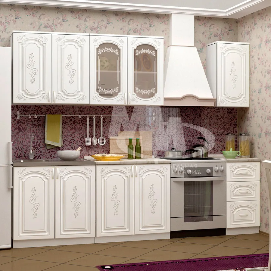 Корпус кухни выполнен из ЛДСП. фасады МДФ белый