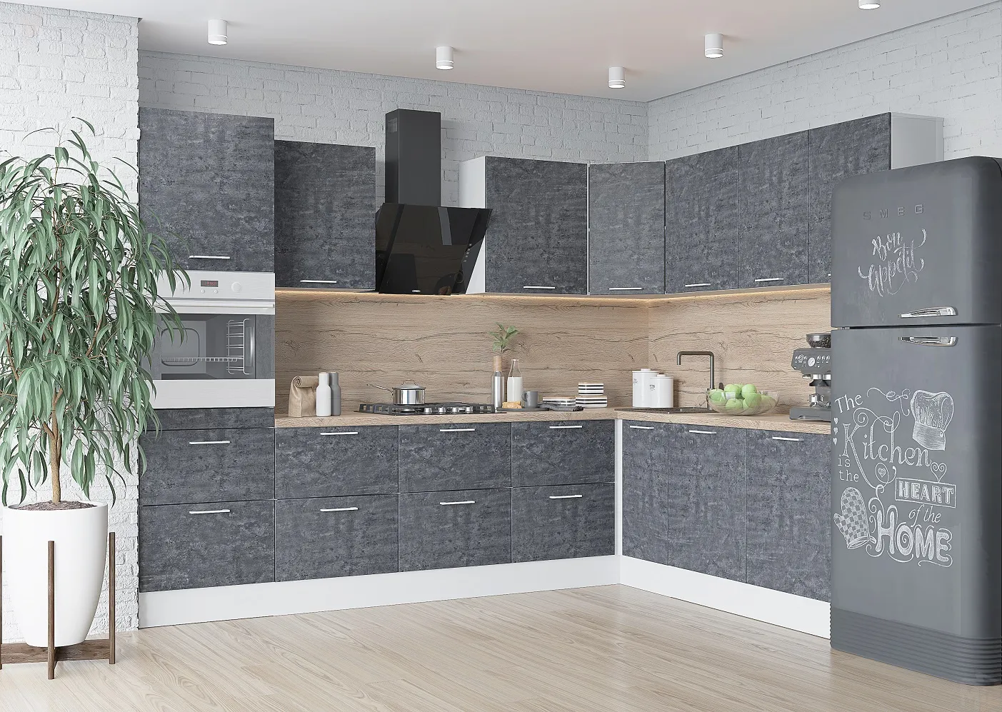 Кухня Оптима угловая 3,0*2,2 с пеналом (камень арья)