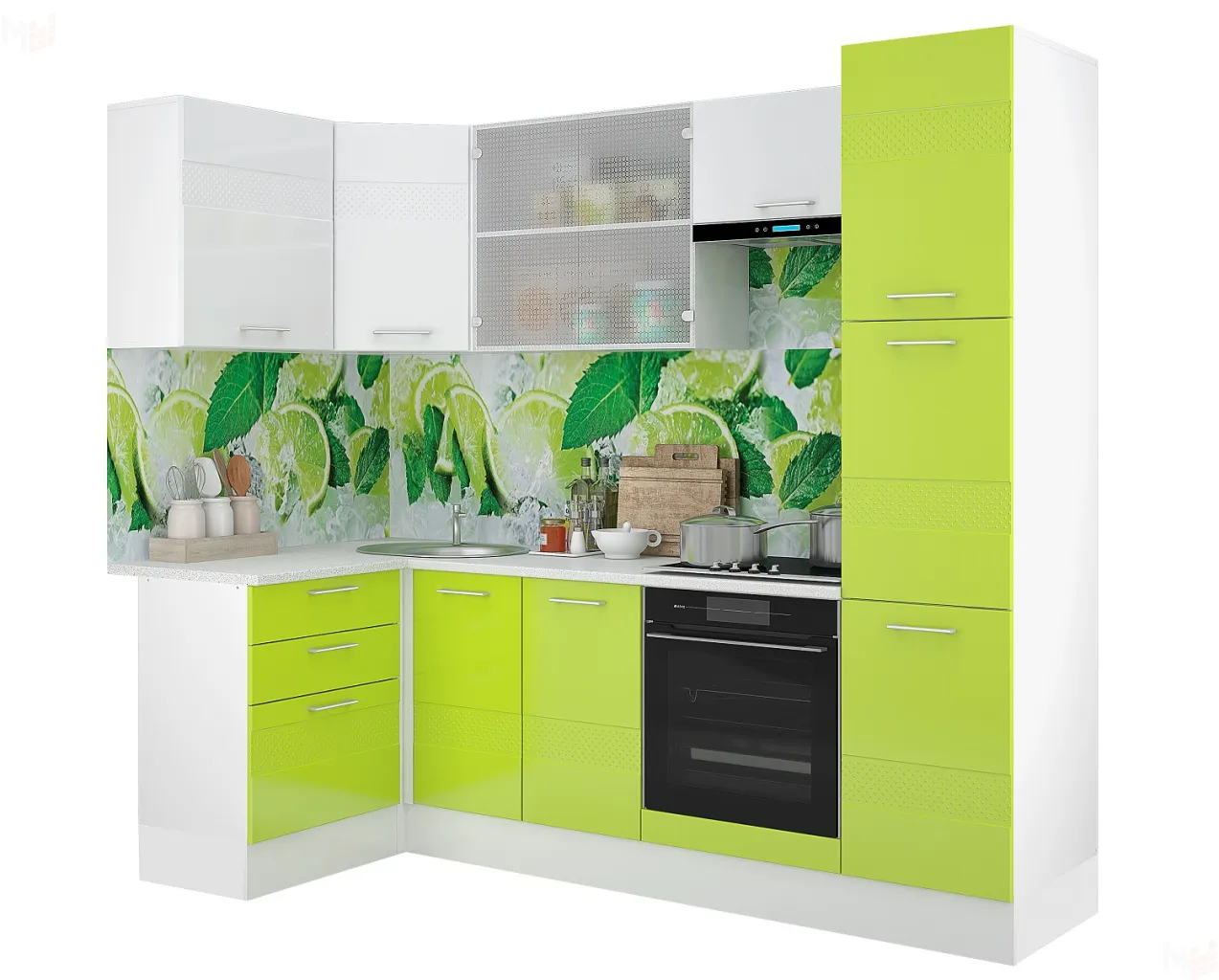 Угловой кухонный гарнитур для небольшой кухни. Корпус ЛДСП белый, фасады МДФ глянец (цвет можно выбрать один или разные на верхние и нижние модули). Стоимость указана без столешницы.