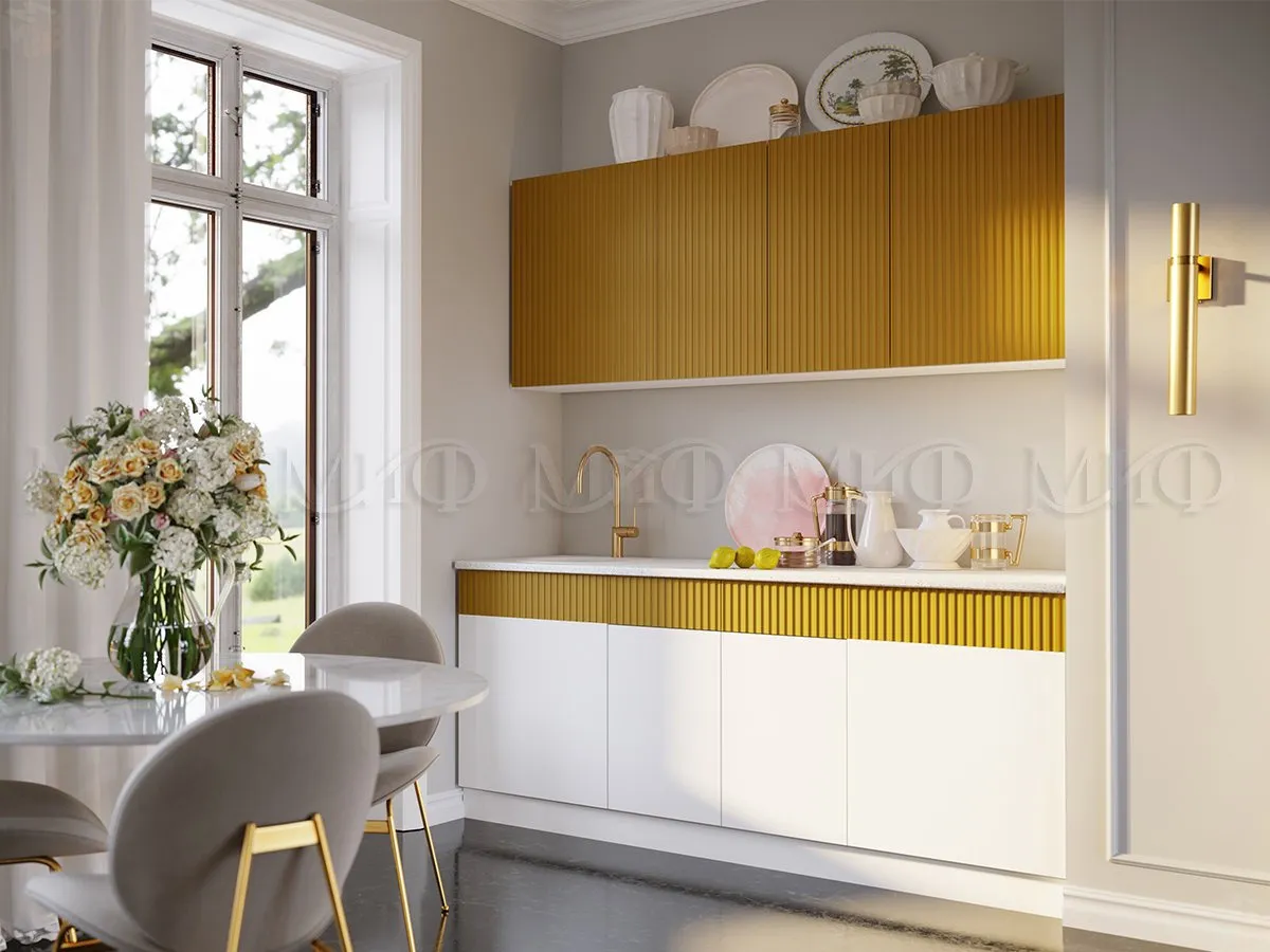 Кухня Оливия 2,0 белый снег софт/горчица софт