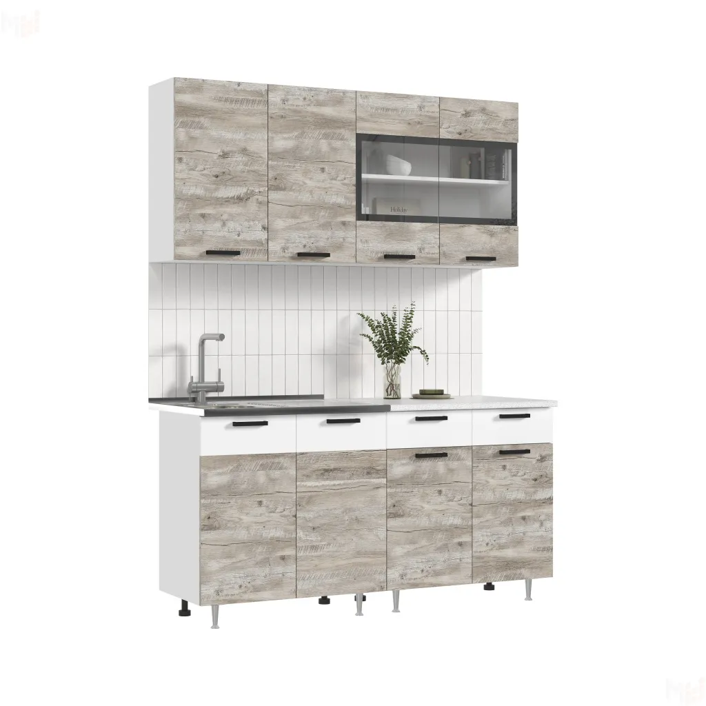Каркас кухни выполнен из ЛДСП белого цвета. Фасады ЛДСП Юкон/вставка Белая.