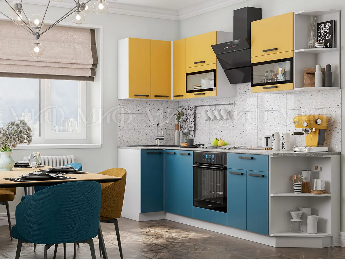 Кухня угловая Техно New 0,9*2,7 Горчица софт/Атлантик софт