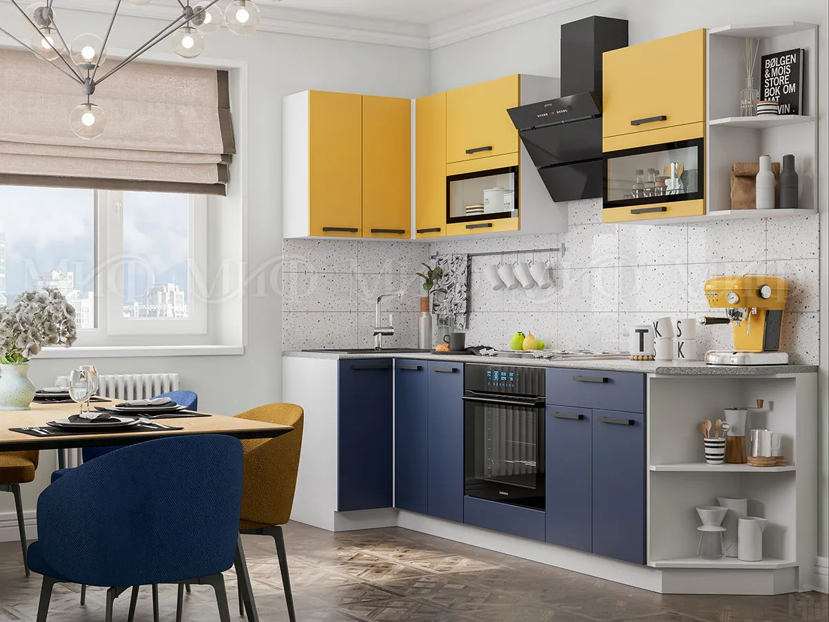 Кухня угловая Техно New 0,9*2,7 Горчица софт/Ультрамарин софт