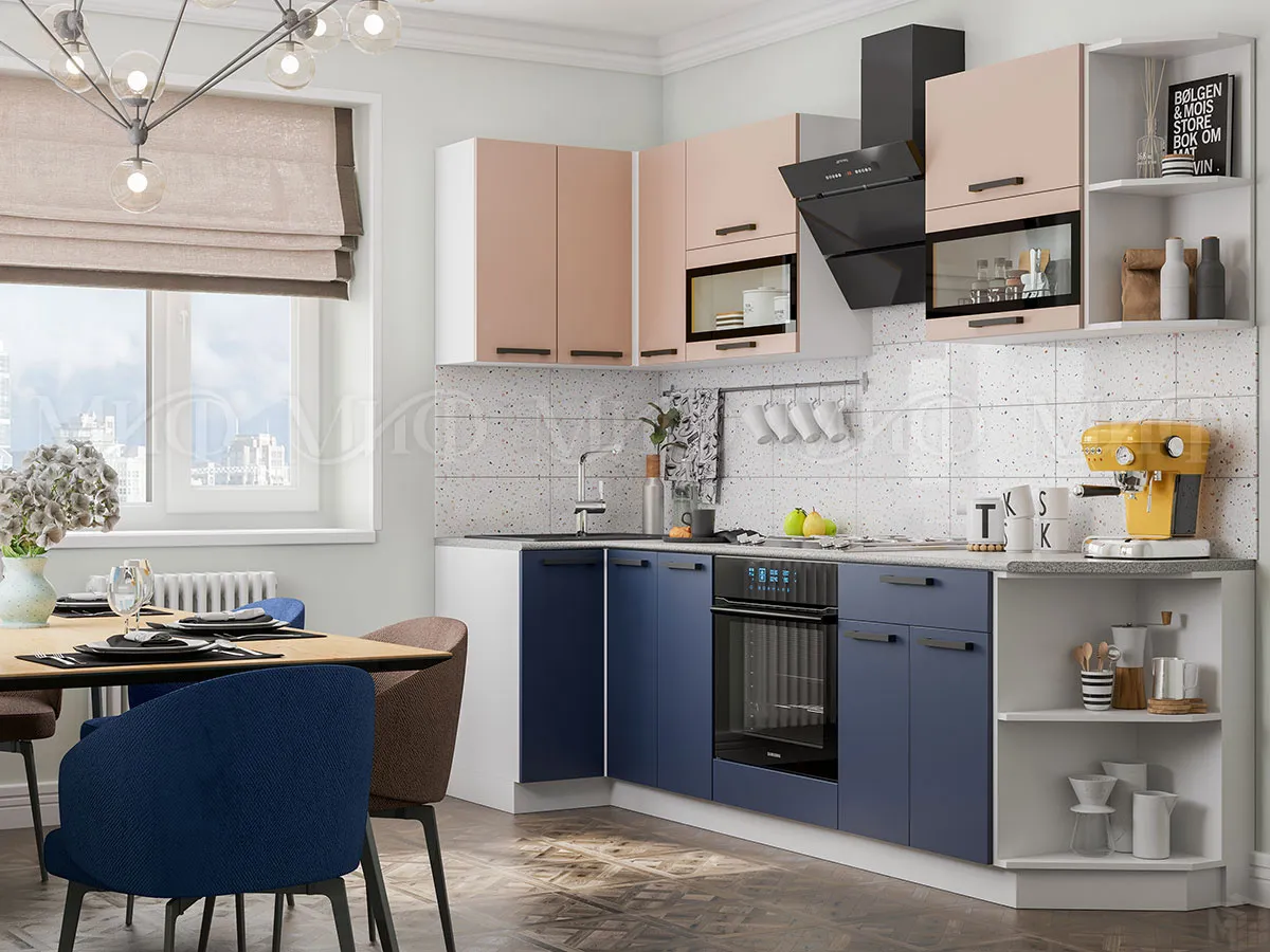 Кухня угловая Техно New 0,9*2,7 Пудра софт/Ультрамарин софт