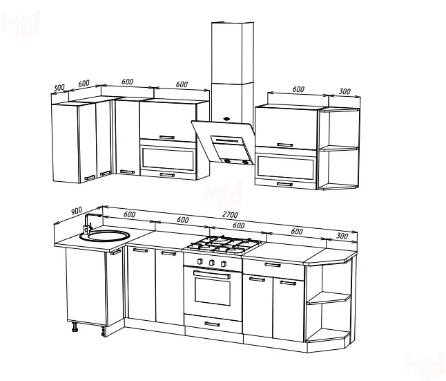 ширина 2700 мм, глубина 900 мм, высота 2200 мм