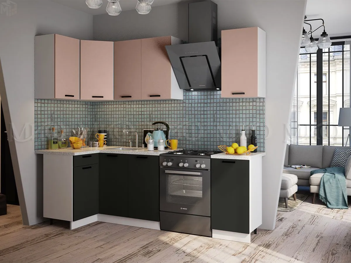 Кухня угловая Техно New 1,1*1,8 Пудра софт/Графит софт
