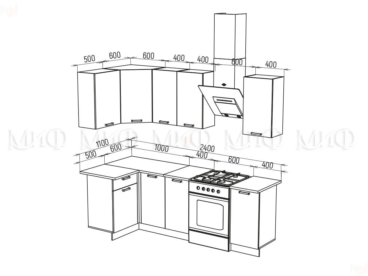 Кухня Люкс МДФ угловая 1,4х2,4 м