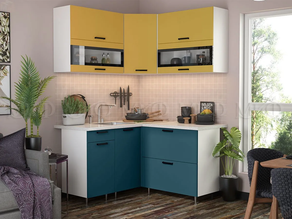 Кухня угловая Техно New 1,4*1,4 горчица софт/атлантик софт