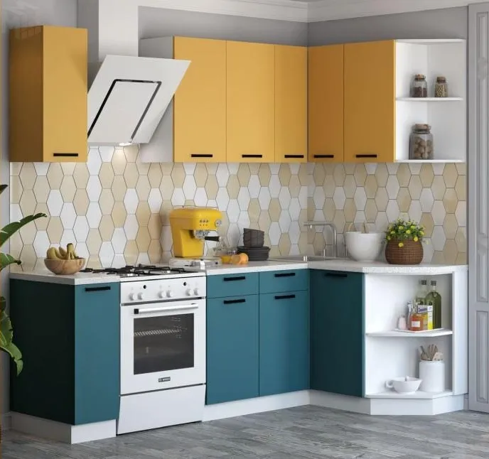 Кухня угловая Техно New 1,7*1,3 Горчица софт/Атлантик софт