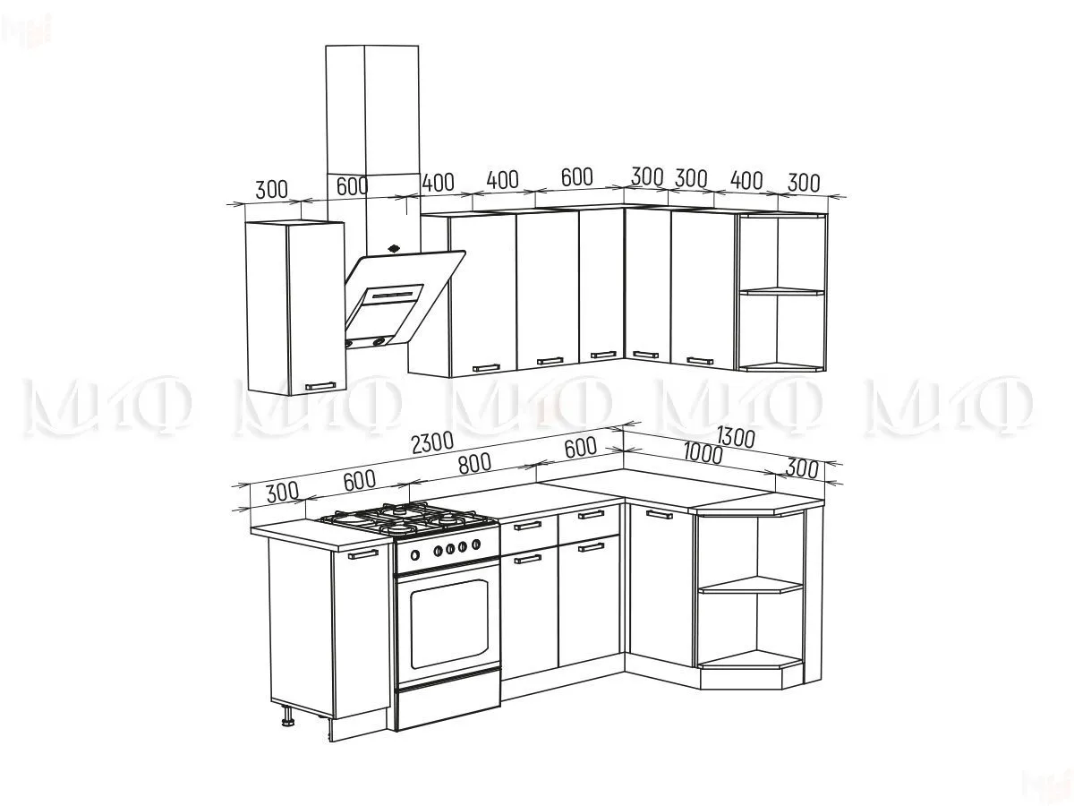 - Шкаф верхний угловой ШВУ600 прямой (ширина 600 мм, глубина 600 мм, высота 718 мм)
